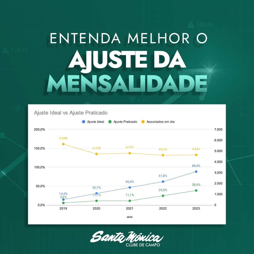 Ajustes crescentes e frequência de associados: O ajuste para 2024 foi progressivo, pois a frequência dos associados tem aumentado. Com mais uso do clube, temos maiores despesas de manutenção e insumos.