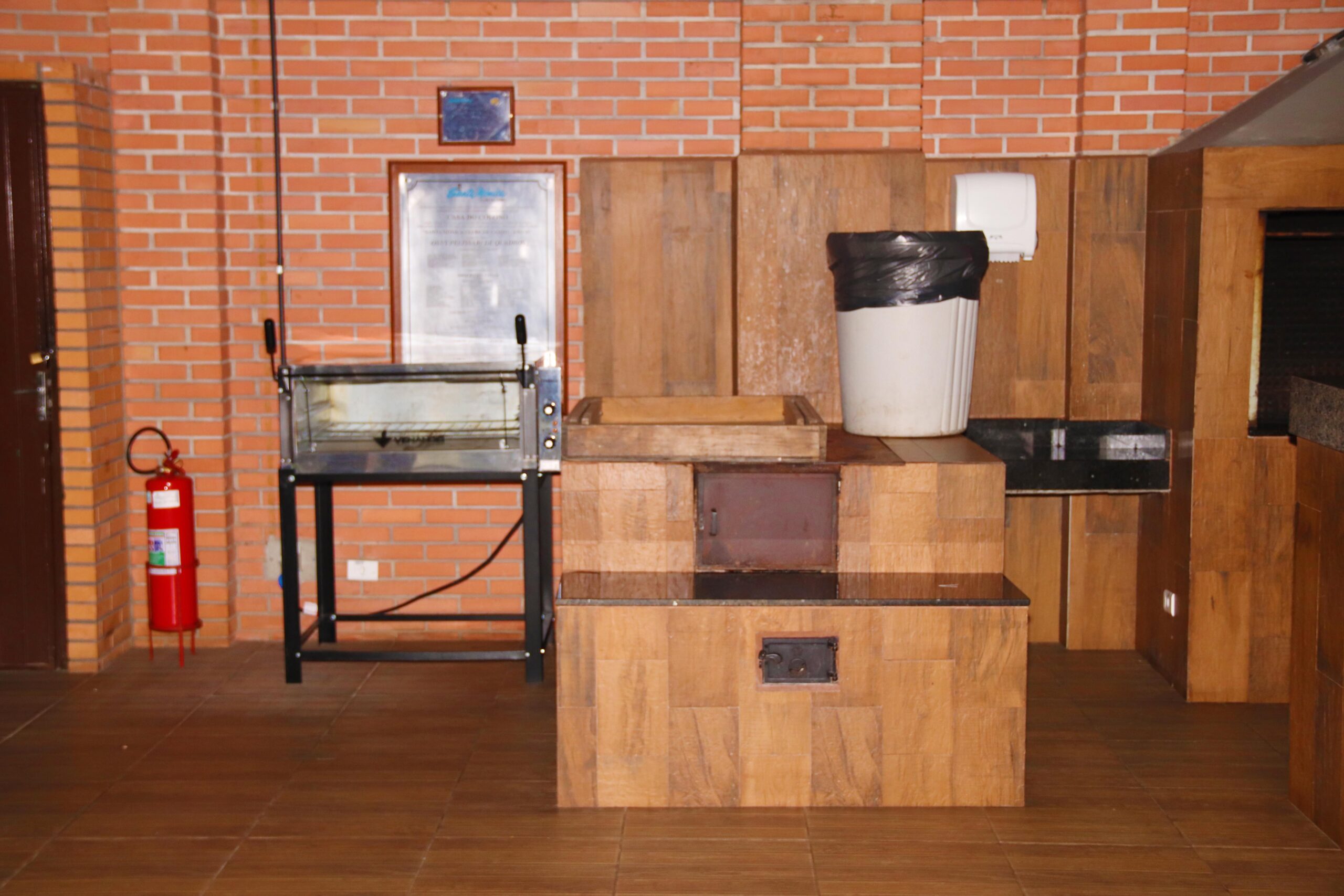 churrasqueira com grelha, pia e balcão