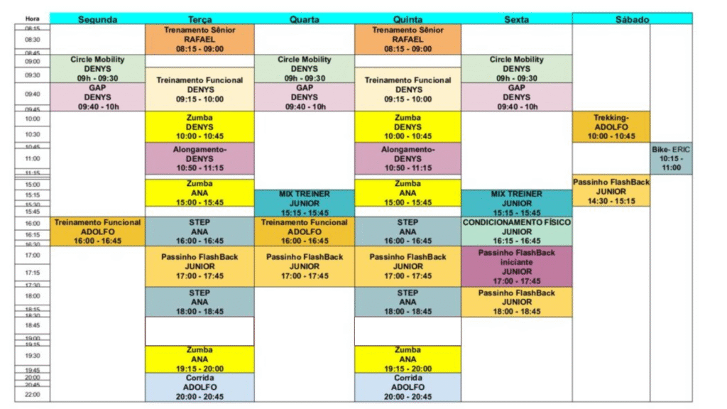 NOVA GRADE DE HORÁRIOS DAS AULAS DA ACADEMIA
