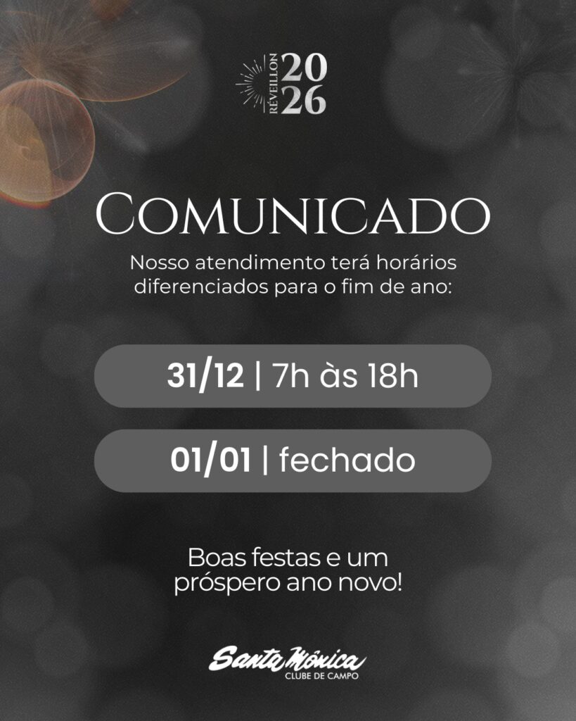 Em razão das comemorações de fim de ano, o Clube terá horários especiais de funcionamento em alguns dias. Para melhor planejamento dos associados, reunimos abaixo todas as informações sobre abertura do clube, expediente da Secretaria e uso das piscinas.