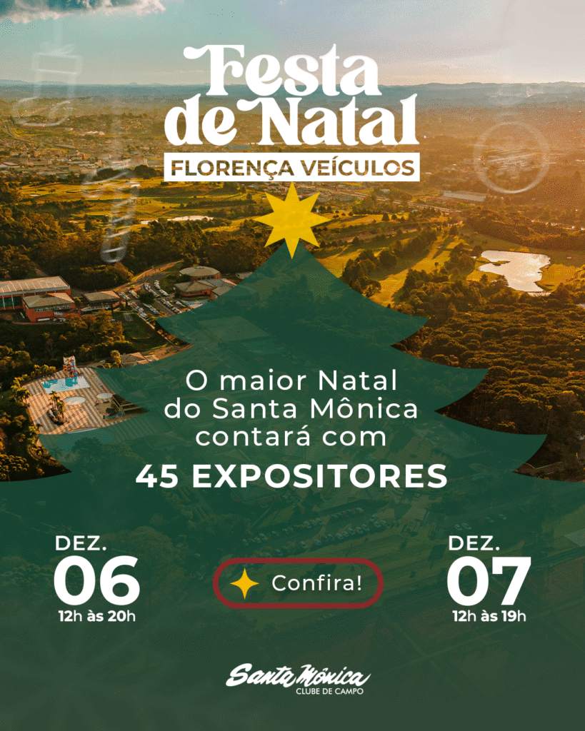 O Natal do Santa Mônica Clube de Campo – Florença Veículos foi planejado para ser memorável: maior, mais iluminado, mais interativo e mais acolhedor. Uma festa que celebra união, tradição e o orgulho de ser parte da nossa comunidade.