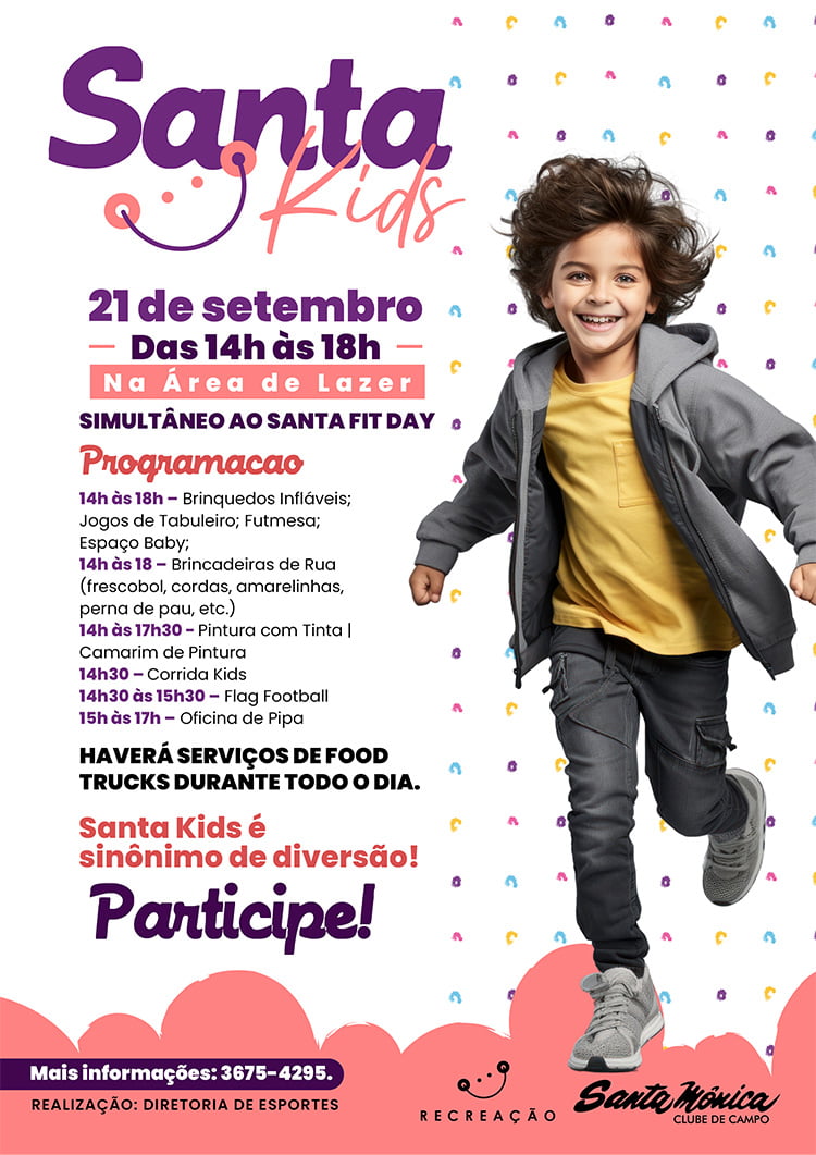 Neste sábado, dia 21 de setembro, acontece mais um Santa Kids, promovido pela Diretoria de Esportes.