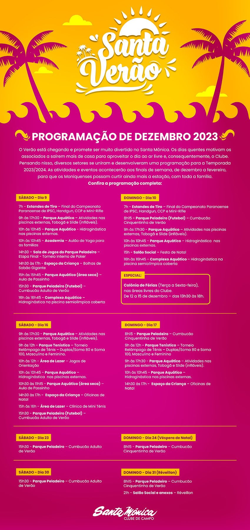 Programação do Santa Verão inicia neste fim de semana no ClubeSanta Mônica Clube de CampoSem categoria