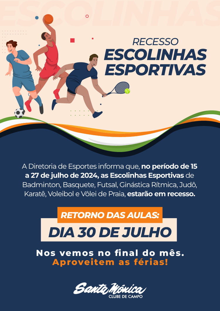 As férias de inverno estão chegando e algumas atividades esportivas também terão uma pausa no Santa Mônica!