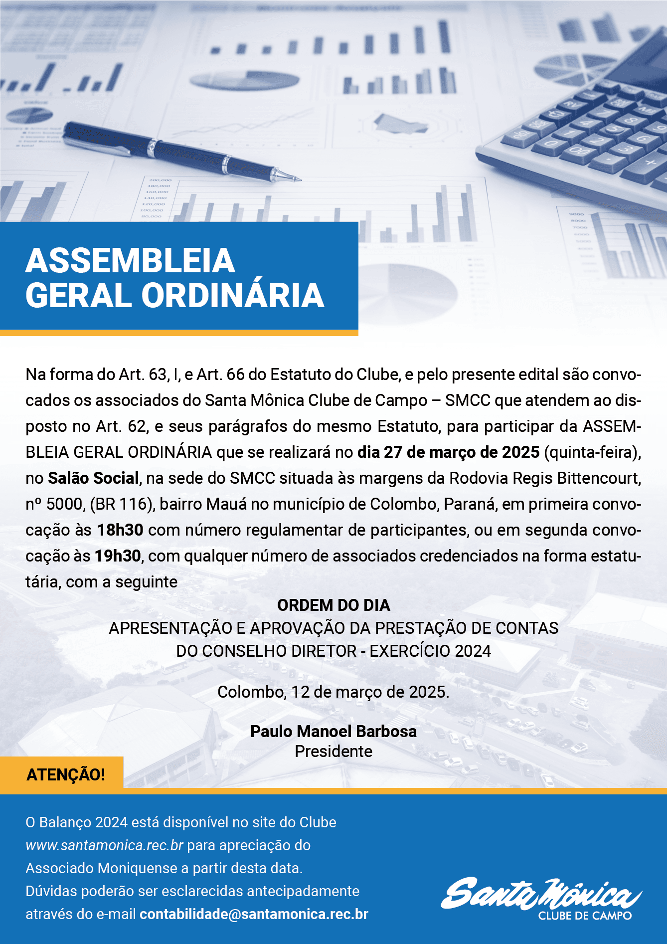 Home Santa Mônica convoca associados para Assembleia de Prestação de Contas CartazA4