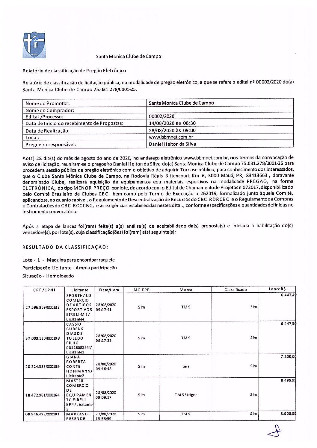 Home Termos de Execução em andamento Termos de Execução Encerrados Pregao-Eletronico-0.2020_Classificacao